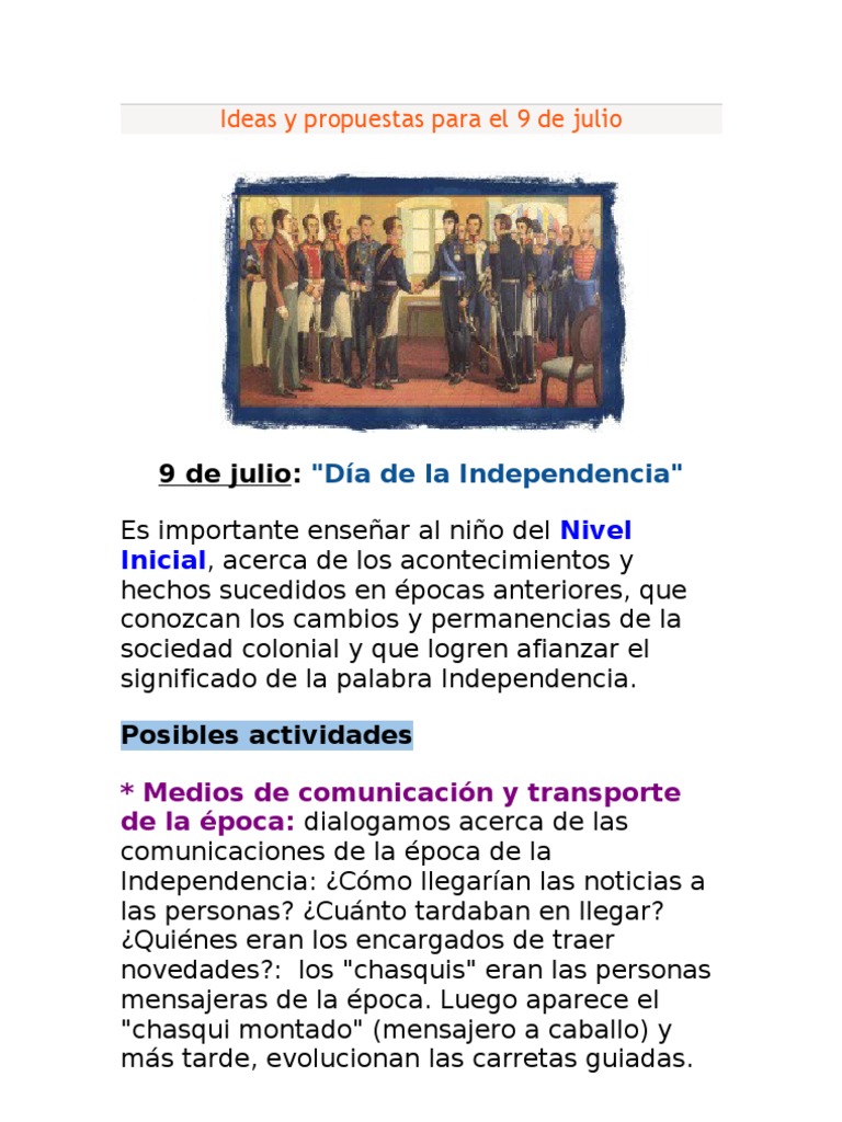El feriado del 9 de julio, fecha en la que se celebra el día de la independencia, es calificado en el calendario de feriados oficial del ministerio de interior como inamovible y al ser el. Quedan 175 días para finalizar el año. 1 ver respuesta luciatarea3 está esperando tu ayuda. Ya son las 15:00 hs, o sea ya es 9 en casi todos lados. En un enfrentamiento con los aborígenes, muere el comandante estanislao heredia y un.